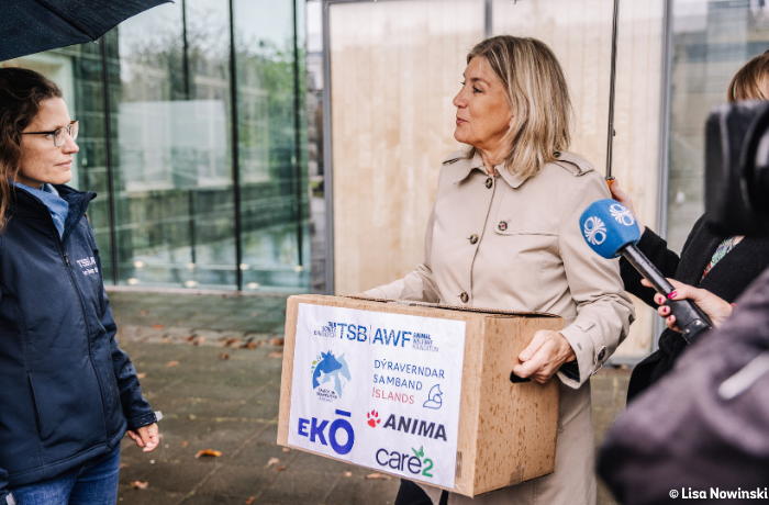 I oktober 2025 afleverede vi sammen med andre europæiske og islandske organisationer 300.000 underskrifter til den ansvarlige minister i Island.