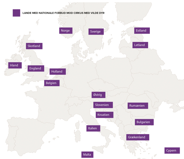 Disse lande har foreløbigt indført forbud mod vilde dyr i cirkus eller er ved at gære det