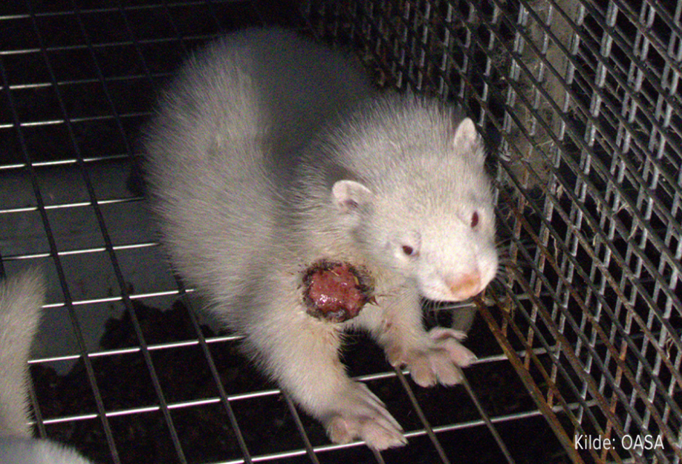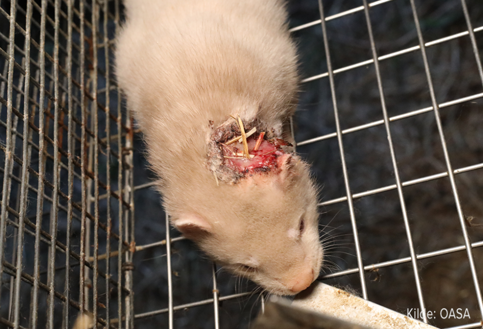 Billederne er fra juni 2025 og er offentliggjort af Dyreværnsorganisationen OASA. Ved et uanmeldt tilsyn fandt Fødevarestyrelsens hele 76 mink med åbne sår, og 34 mink blev aflivet på dagen, fordi deres skader var så voldsomme.